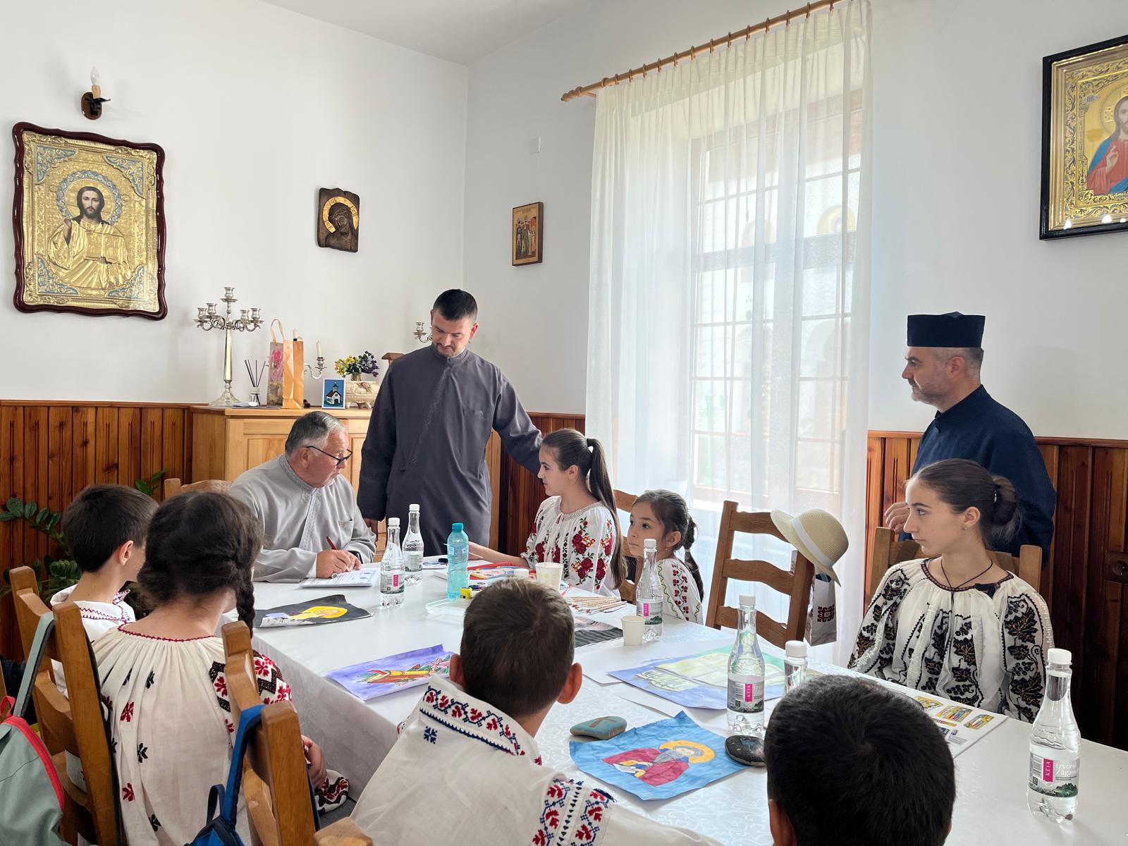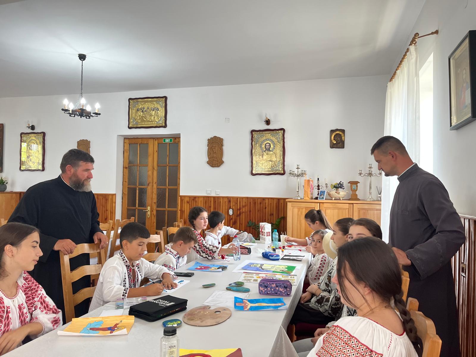 Un moment de mare emoție și creativitate a fost atelierul de pictură de icoane, în cadrul căruia copiii și-au exprimat credința prin linii, culori și lumină, dând chip sfințeniei cu mâinile și inimile lor curate. Tabăra s-a desfășurat în cadrul Programului Eparhial „Lăsați copiii să vină la Mine!”, oferind o experiență formativă integrală – educație religioasă, artistică și comunitară – menită să cultive valori durabile, încredere, curaj și apartenență la viața Bisericii.