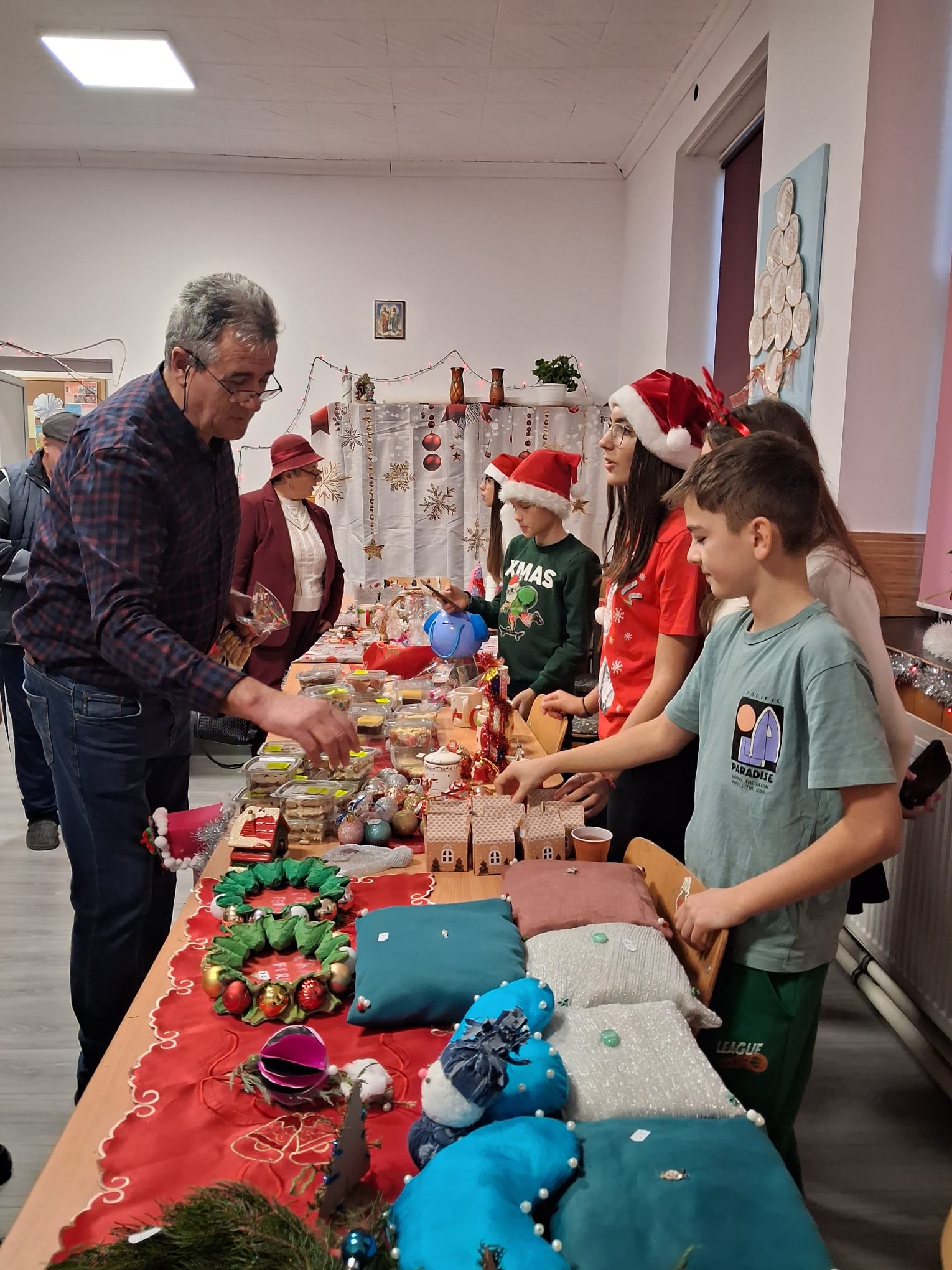 Nașterea Domnului nu este doar o sărbătoare a colindelor și a darurilor, ci mai ales o chemare la iubire jertfelnică și solidaritate. În acest duh, domnul primar, Panteru Dorin-Florin, cadrele didactice ale școlii – prof. înv. primar Panteru Oana, Deaconu Mariana-Cati, Poenaru Emilia, Deaconu Simona, Laita Ioana, prof. de limba română Stoica Aura-Florina și prof. de limba engleză Budan Claudia – au lucrat împreună cu elevii și părinții pentru a pregăti un târg care să reflecte frumusețea sufletului creștin.