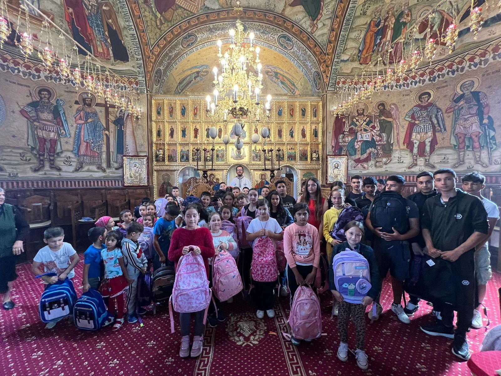 Părintele slujitor Grigorescu Andrei a oferit ghiozdane echipate complet, pentru cei 70 de copii ai parohiei, din clasele 0-VIII.