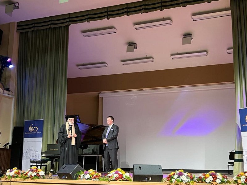 La aniversarea UPIT, sărbătorită la Filarmonica Pitești, au fost prezente autoritățile locale și județene, rectori și reprezentanții ai universităților din țară, profesori, studenți și absolvenți.