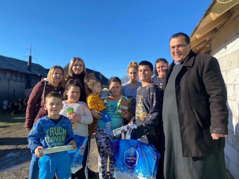 Preotul slujitor Marinac Marius de la parohia Ciocănăi, comuna Moșoaia, împreună cu voluntari de la Grădinița Universul Copilăriei din Moșoaia, a fost în mijlocul unei familii cu mulți copii aflați în situație de vulnerabilitate, cărora le-a oferit cadouri de sfintele sărbători.