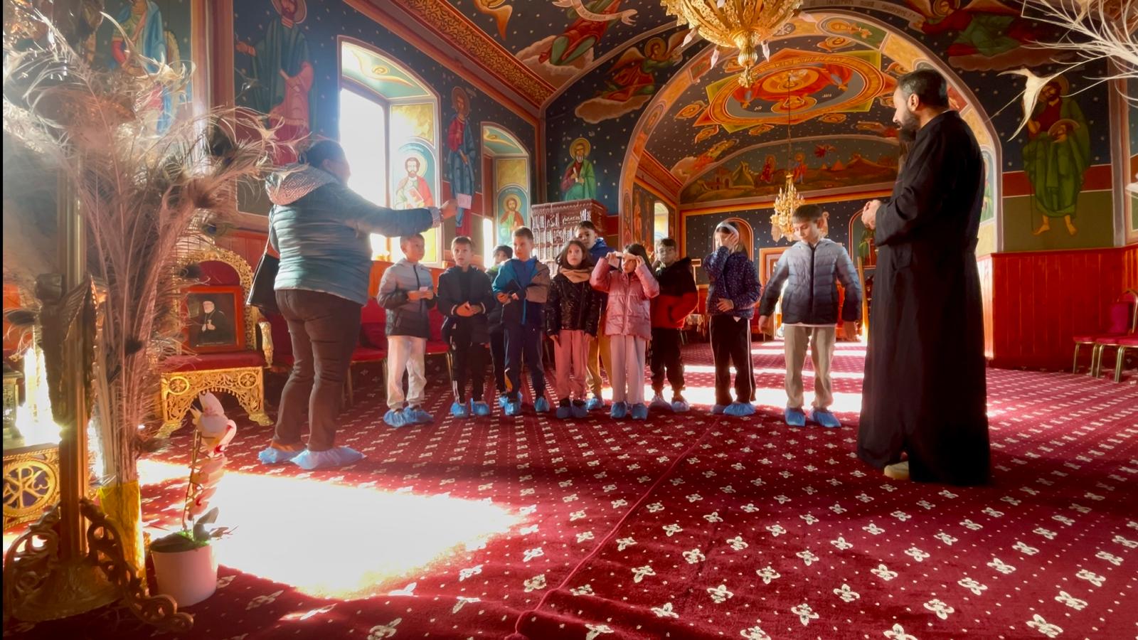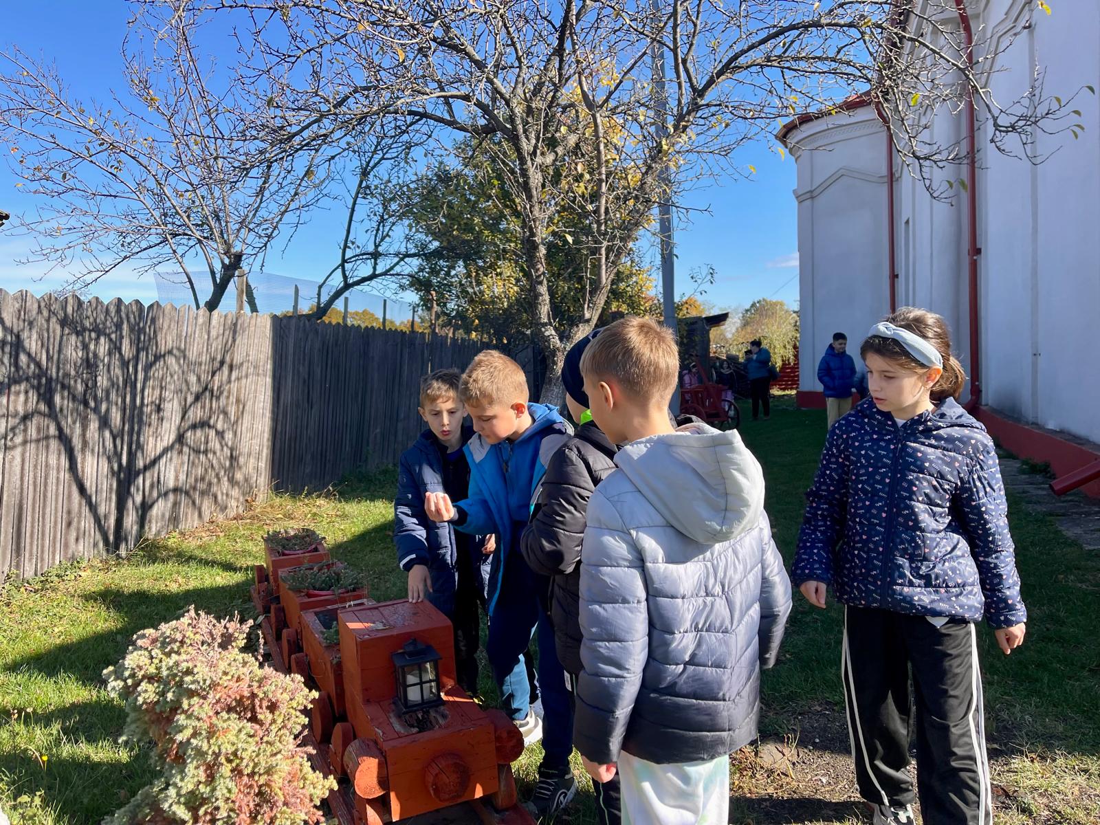 Părintele slujitor Mateescu Marin a vorbit copiilor despre istoricul bisericii și a comunității, după care au fost desfășurate diverse activități în zona de joacă a parohiei, cei mici interacționând cu animalele și păsările, care formează o frumoasă gospodărie.
