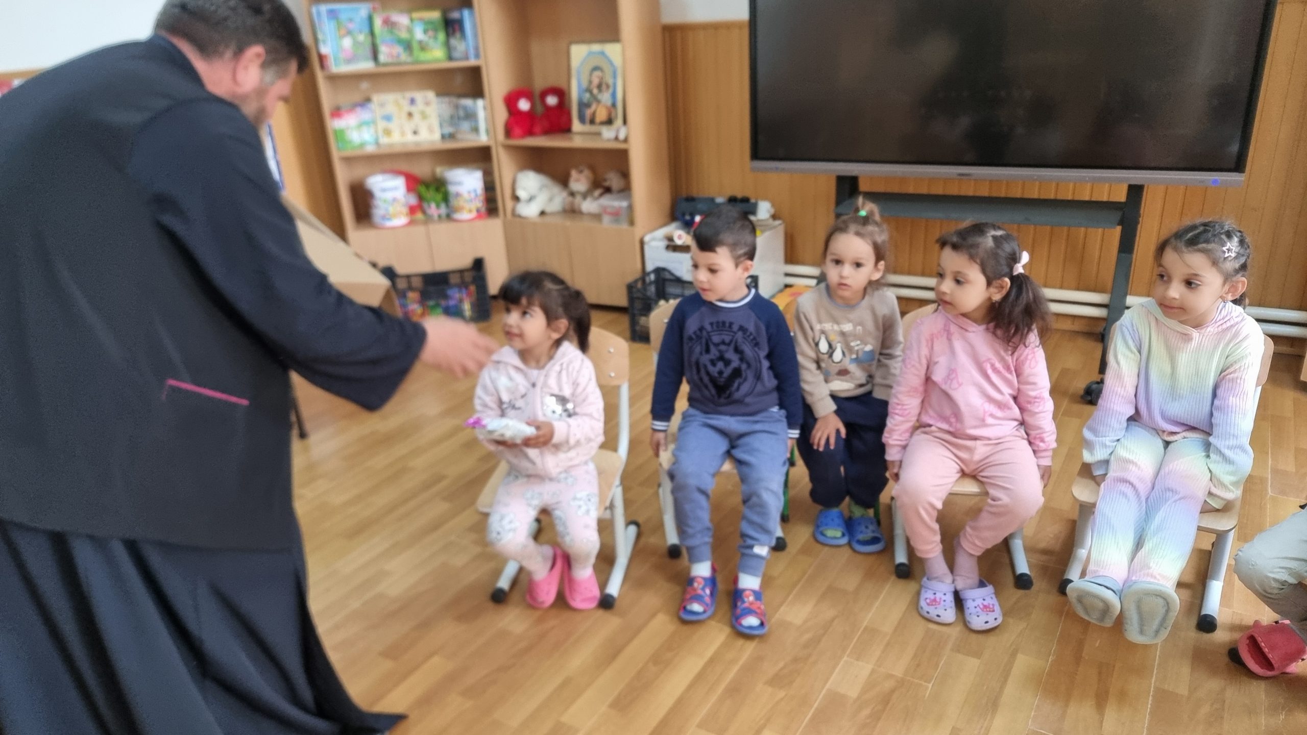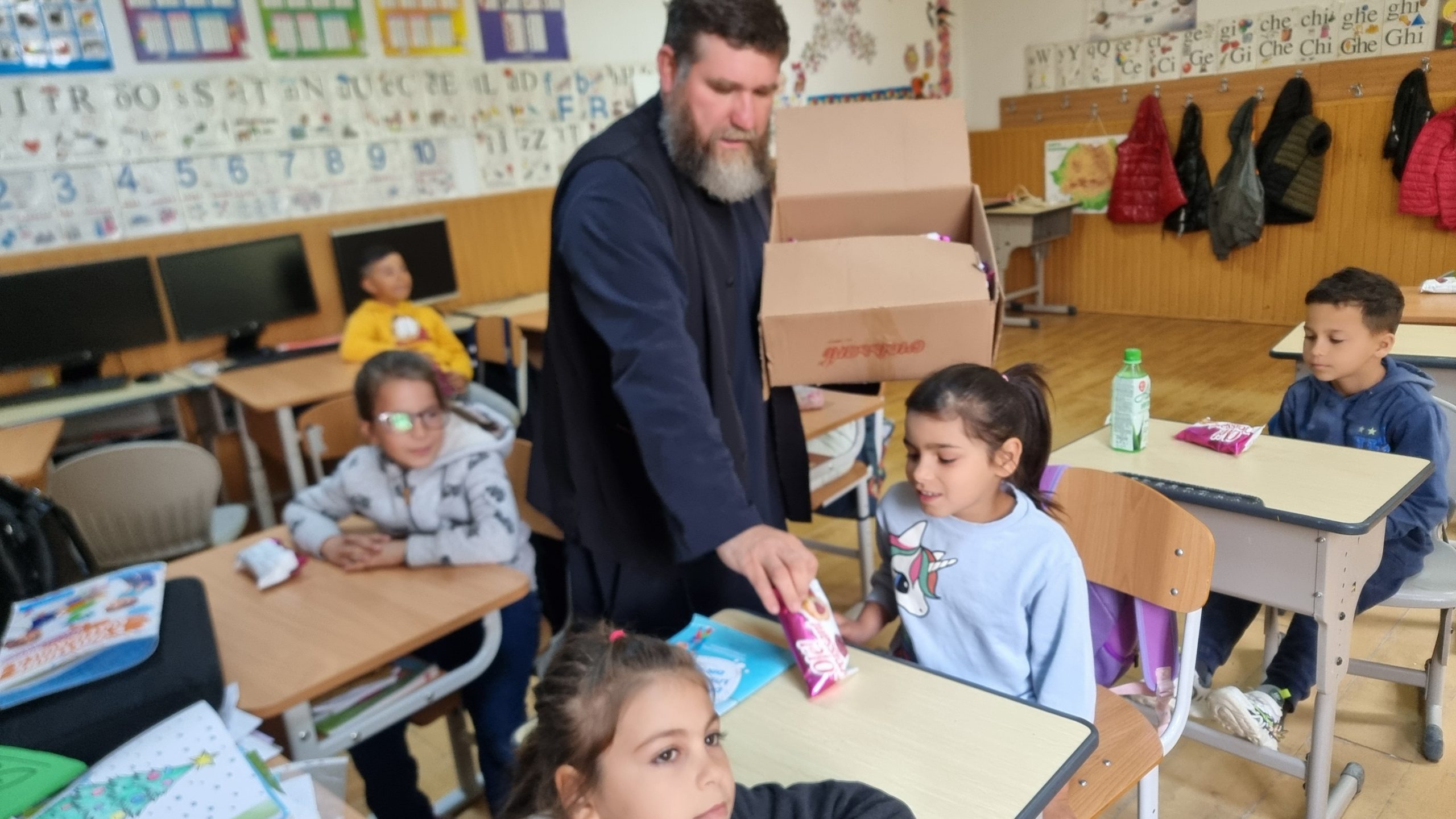 Părintele slujitor Dan Stancu de la parohia Glavacioc, protoieria Costești, a făcut o vizită pastorală copiilor de la școala și grădinița din localitate, cărora le-a oferit daruri.