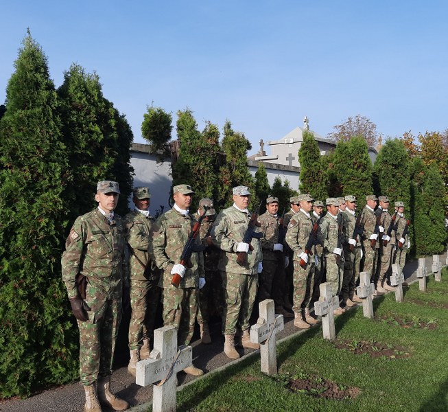 Au fost depuse coroane de flori din partea reprezentanților diferitelor instituții locale și județene, după care, cei prezenți, au participat la parada militară organizată cu acest prilej.