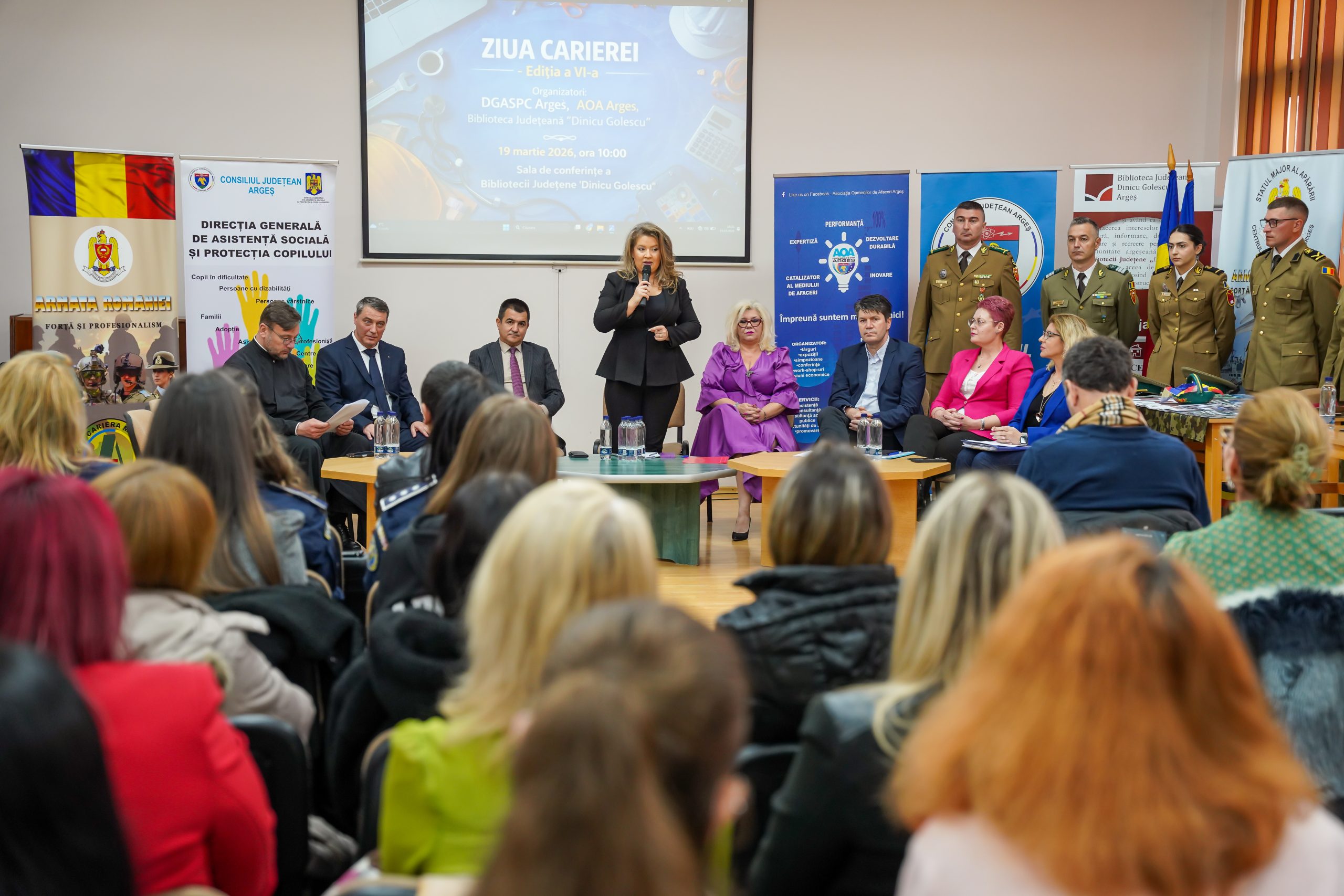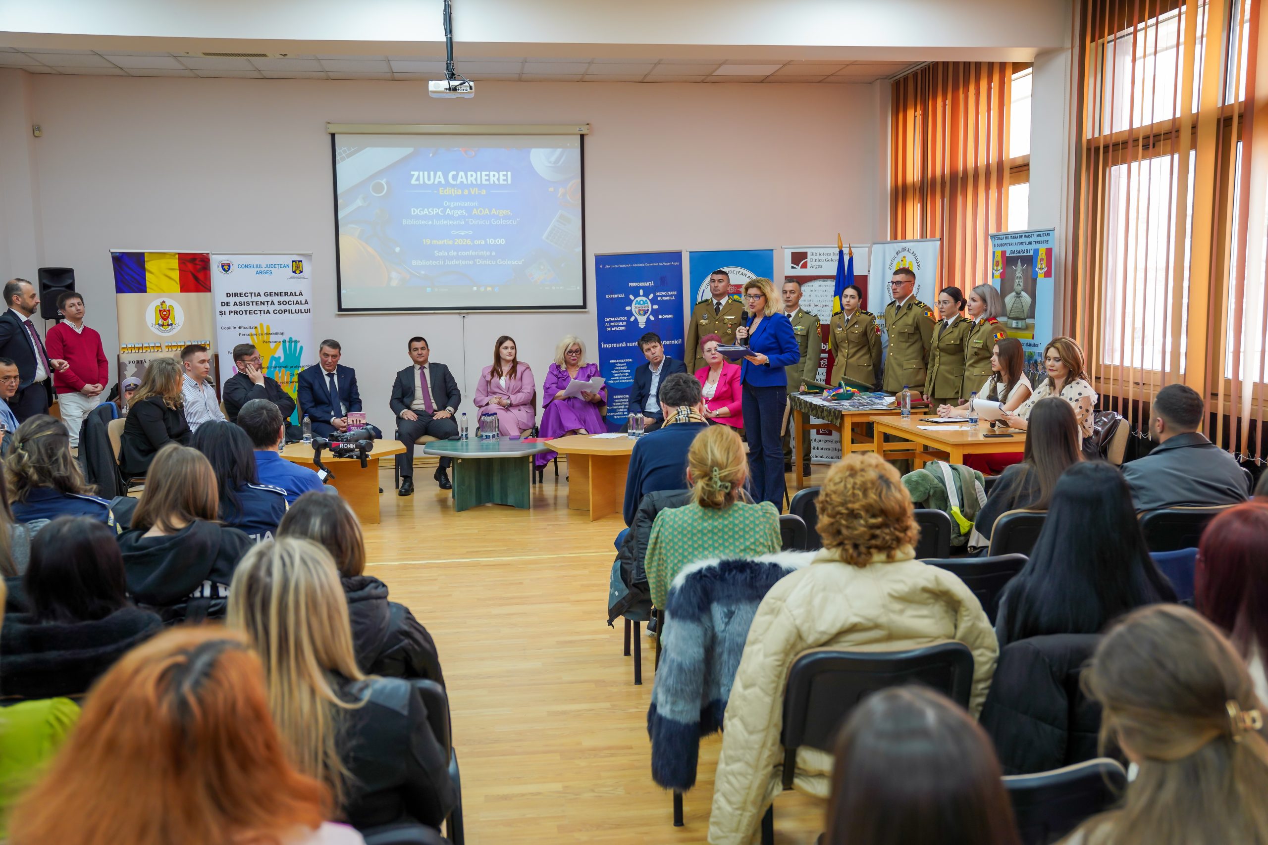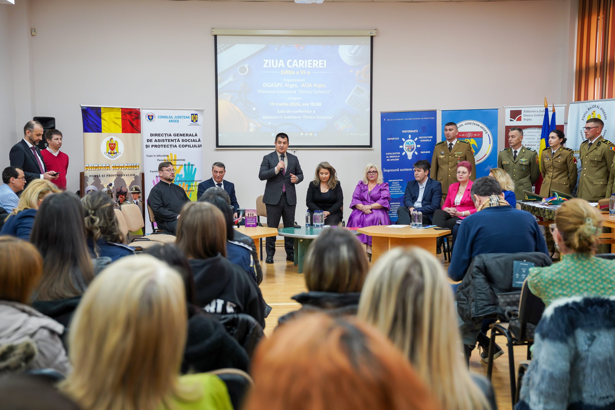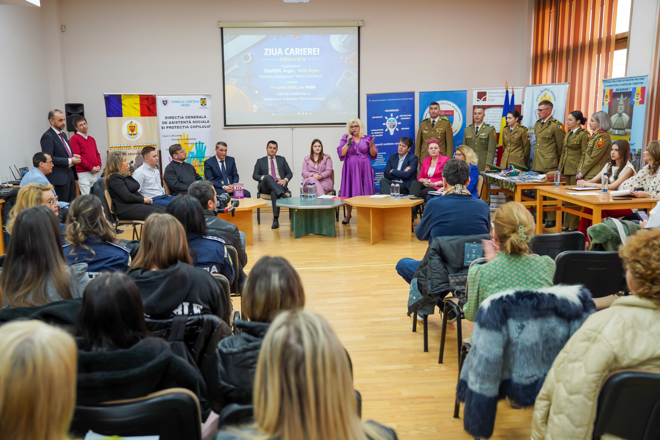 În data de 19 martie 2026, Direcţia Generală de Asistenţă Socială şi Protecţia Copilului Argeş a organizat, în parteneriat cu Asociaţia Oamenilor de Afaceri Argeş, şi cu Biblioteca Judeţeană “Dinicu Golescu”, evenimentul ‘ZIUA CARIEREI’ ediţia a VI-a, în sala de conferinţe a Bibliotecii Judeţeană “Dinicu Golescu”.