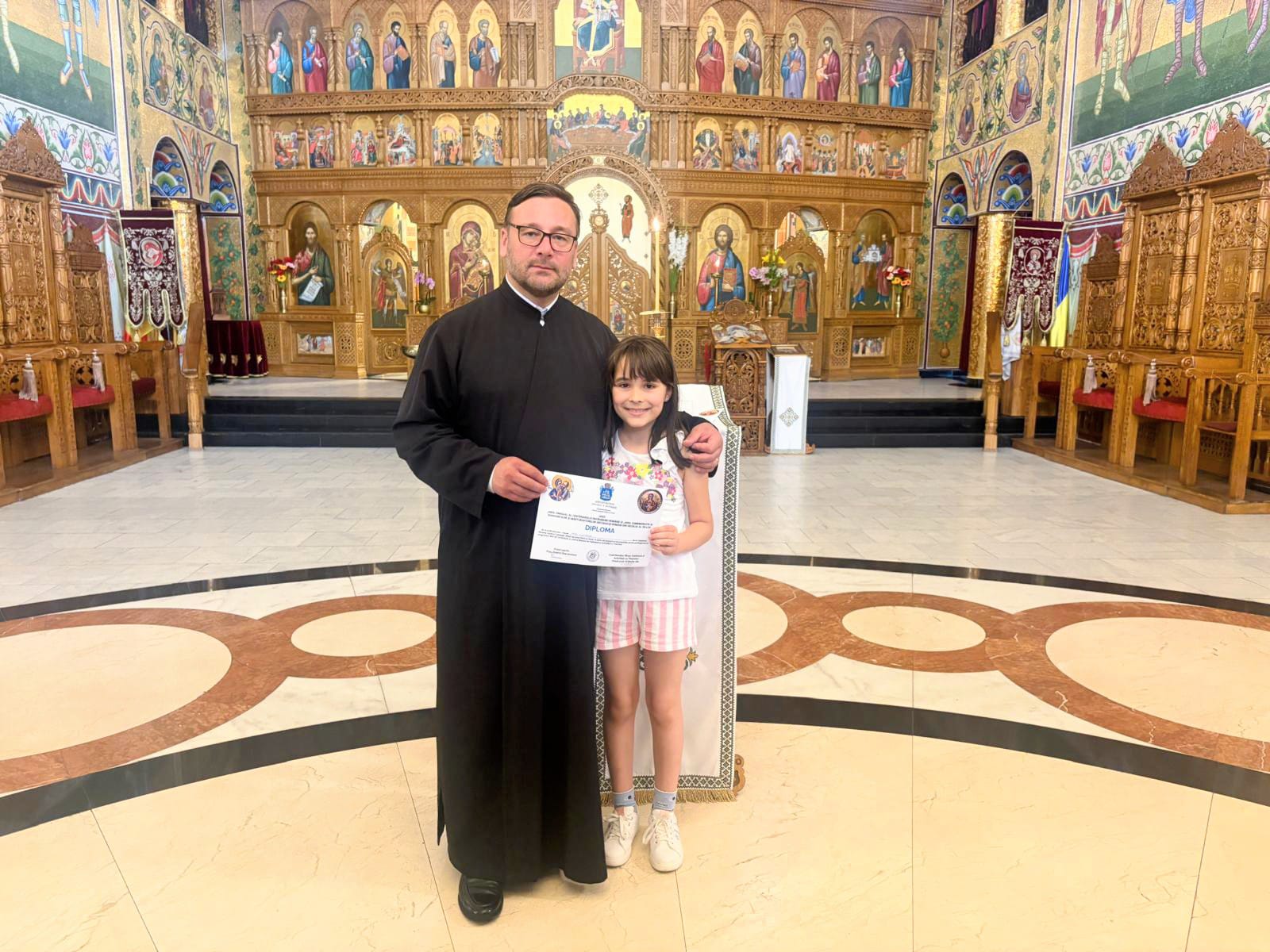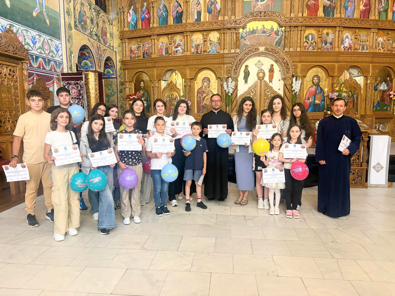 În finalul activității copiii au primit diplome prin care biserica noastră  își arată recunoștința și prețuirea pentru copiii care participă cu drag la orele de cateheză și au participat la Slujba de Tedeum prin care am mulțumit lui Dumnezeu pentru toate binefacerile primite în familiile din care fac parte.