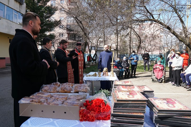 A fost săvârșită și o slujbă de sfințire a icoanelor care au fost dăruite tuturor beneficiarilor. Preoții prezenți în sobor au împărțit flori, cărți cu tematică religioasă și dulciuri pentru toate doamnele.