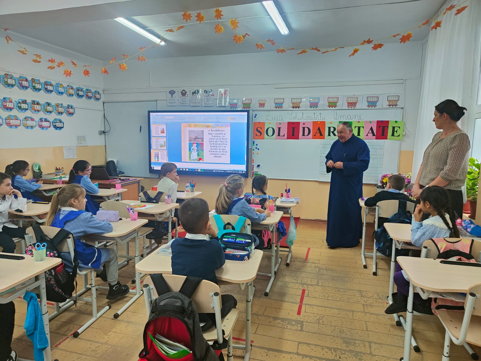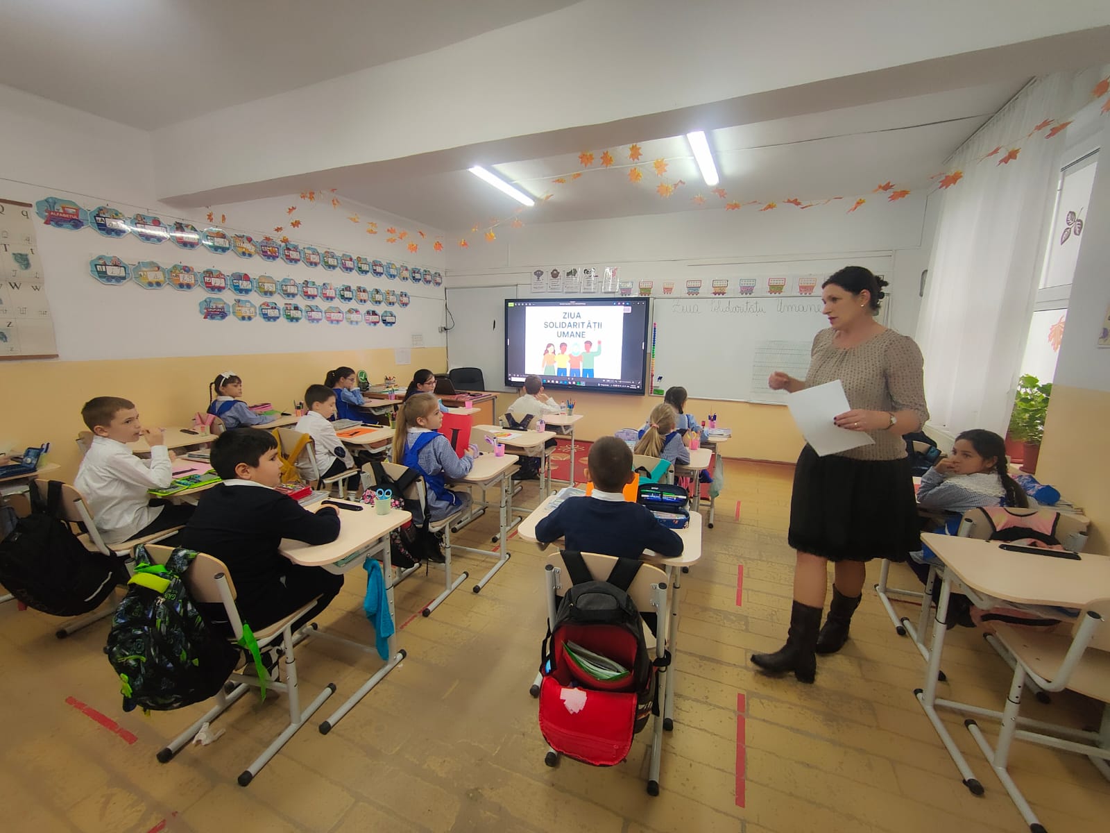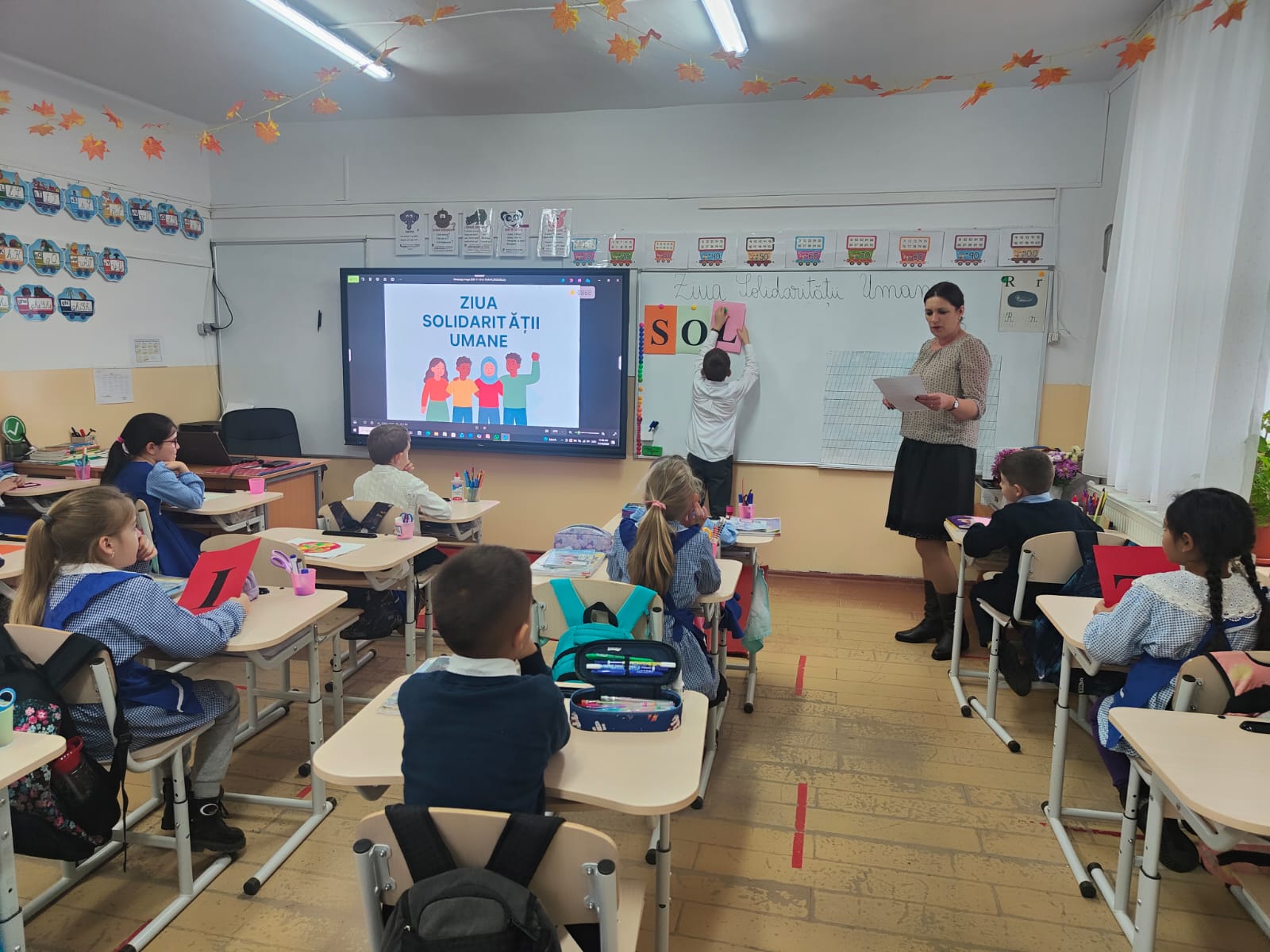 Activitatea a fost gândită cu creativitate și sensibilitate. Elevii au primit câte o planșă cu literele cuvântului „SOLIDARITATE”, iar printr-un joc educativ, au descoperit tema zilei reținând litera inițială a unor propoziții cu mesaj moral. Acest exercițiu le-a stimulat atenția, memoria și, mai ales, înțelegerea profundă a conceptului de solidaritate. Pe măsură ce literele se așezau pe tablă, copiii descopereau și alte cuvinte-cheie precum sprijin, onestitate, loialitate, implicare, dăruire – toate legate de spiritul solidarității.